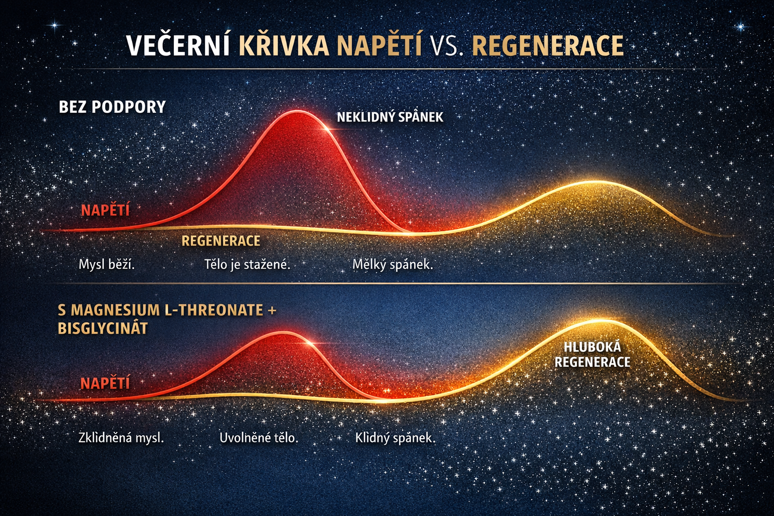 Jedna forma cílí na mozek. Druhá na tělo. Společně vytvářejí komplexní podporu přes den pro výkon, večer pro zklidnění a kvalitní spánek.