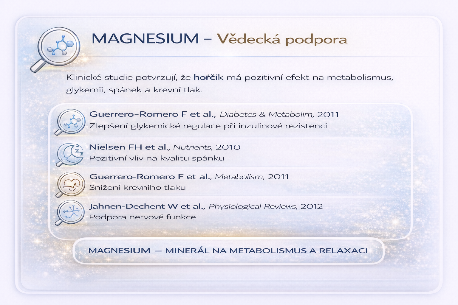 Hořčík je kofaktorem více než 300 enzymatických reakcí v těle. Podílí se na syntéze bílkovin, regulaci nervových impulsů i aktivaci vitamínu D.